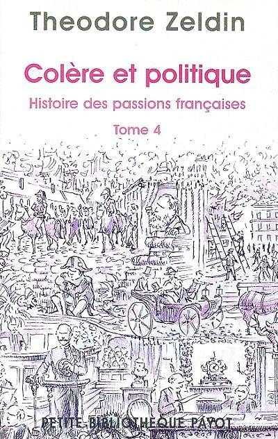 Histoire des passions françaises, volume 4. "J'ai cherché à explorer l'histoire des passions - des désirs, des haines et des peurs - parce que je pense que la vie des gens ordinaires, qui se débrouillent comme ils peuvent, ne peut se résumer dans la recherche de la justice, de la gloire ou de quelque autre idéal. J'ai voulu cerner toutes leurs contradictions et toutes leurs hésitations, faire ressortir la complexité des réactions individuelles face aux pressions aussi bien intérieures qu'extérieures. J'ai donc pris comme thèmes principaux de mon livre (qui couvre la période 1848-1945) l'ambition, l'amour, les colères politiques, l'orgueil et l'espoir intellectuels, le goût et l'anxiété." (T. Zeldin)