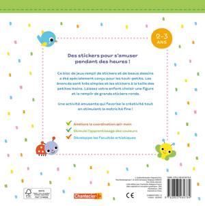 Laissez votre enfant s’amuser à faire des collages grâce à ce superbe livre d’autocollants, spécialement conçu pour les petites mains. Le concept est simple et super amusant : votre enfant choisit une page et il doit remplir le dessin de stickers ronds et colorés. Une chouette activité pour les tout-petits qui apprennent à reconnaître les couleurs et les formes.