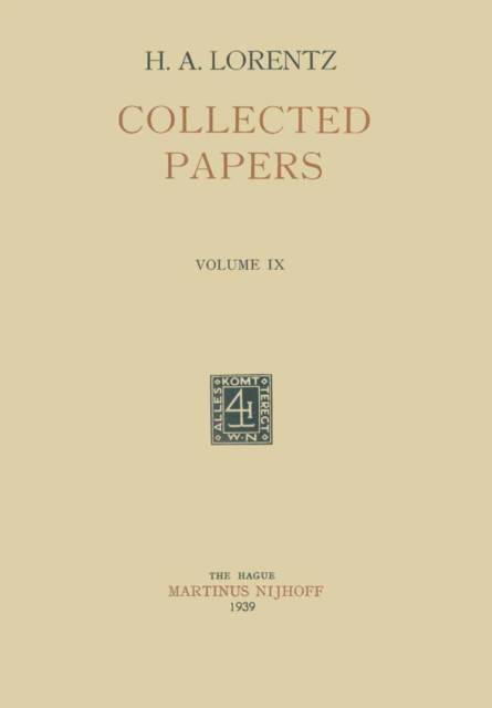 With the present ninth volume we bring to a conclusion the edition of the Collected Papers of Professor H. A. Lorentz. It contains the evidence of his constant activity to promote the interest in science of a larger public, in particular of his country men, by addresses on se- veraloccasions, by articles in magazines and newspapers, and other- wise. In a certain way in this part of his work he belongs more partic- ularly to his country, therefore we reproduce it in the original lang- uage, with the exception of his inaugural address as Leiden professor early in I878, which readers abroad might be interested in. The sketch of Ludwig Boltzmann, in the German language, contains a most powerful and deep-going survey of the scientific work of this genius. In several places the character of the man's personality rather than that 0/ the scientist reveals itself, his attitude towards various problems and his personal views. In his first address he refers to the value of mathematics, we hear his dislike lor too vivid visual speculations and crude hypotheses, his taste lor the soberness of mathematical formulae, where he argues that the fundamental principles must needs escape further explanation. On page 54 we read what he said about determin- ism, and on page I8I he expresses himself on the relation of matter and mind. His intimate feelings on space and time, and the aether, are touched upon on pages 240, 26I, 274.