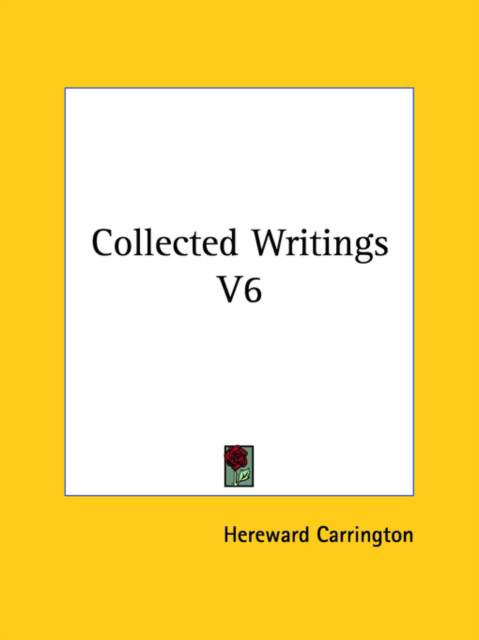 Collected Writings V6 is a book written by Hereward Carrington, a renowned author and investigator of paranormal phenomena. This book is the sixth volume in a series of collections of his writings, featuring a wide range of topics related to the supernatural and the unexplained.The book is divided into several sections, each focusing on a different theme. The first section covers Carrington's investigations into psychic phenomena, including telepathy, clairvoyance, and psychokinesis. The second section delves into the mysteries of the afterlife, exploring topics such as reincarnation, near-death experiences, and communication with the dead.The third section of the book is dedicated to the study of UFOs and extraterrestrial life, featuring Carrington's research into sightings and encounters with alien beings. The fourth section focuses on the occult and esoteric, including topics such as magic, alchemy, and the Tarot.Throughout the book, Carrington presents his findings and theories in a clear and concise manner, drawing on his extensive knowledge and experience in the field of paranormal research. His writing is engaging and thought-provoking, challenging readers to consider the possibility of the existence of supernatural phenomena and the implications they may have for our understanding of the world around us.Overall, Collected Writings V6 is a fascinating and informative book that will appeal to anyone with an interest in the paranormal, the occult, or the mysteries of the universe.Psychical Phenomena and the War and The Story of Psychic Science.This scarce antiquarian book is a facsimile reprint of the old original and may contain some imperfections such as library marks and notations. Because we believe this work is culturally important, we have made it available as part of our commitment for protecting, preserving, and promoting the world's literature in affordable, high quality, modern editions, that are true to their original work.