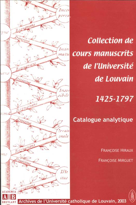 Ce catalogue analyse la collection de cours de l'Université de Louvain conservés dans les Archives de l'institution pour la période allant de 1425 à 1797. Une importante introduction propose un état de la question sur l'enseignement universitaire à Louvain à cette période.