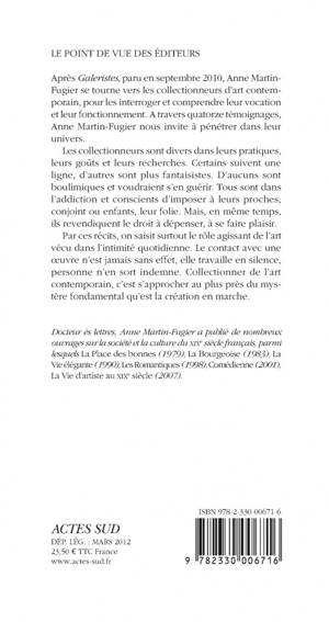 En interrogeant un large éventail de collectionneurs, Anne Martin-Fugier dresse, à travers ces témoignages d'itinéraires humains et de rencontres, un passionnant panorama du marché de l'art et des liens qui s'y tissent.