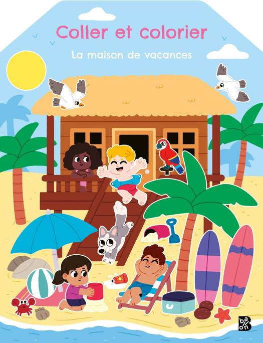 Dans ce livre sur les vacances, il y a plein de choses à voir : des dessins à colorier, des scènes à compléter et surtout … beaucoup d’autocollants ! En plaçant les autocollants au bon endroit et en coloriant les dessins en noir et blanc, complète les illustrations et donne vie à ce livre !