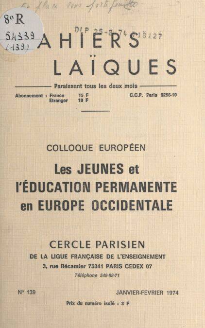 Colloque européen "Les jeunes et l'éducation permanente en Europe occidentale" EBOOK