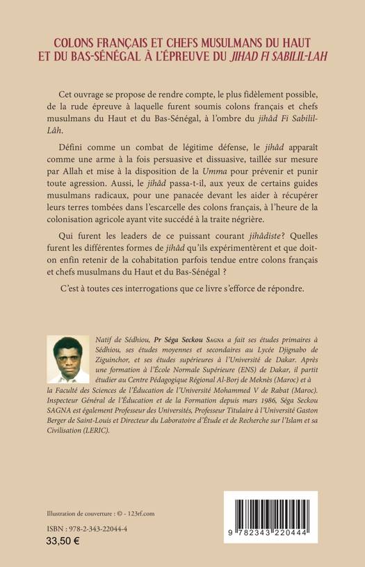 Cet ouvrage se propose de rendre compte de la rude épreuve à laquelle furent soumis colons français et chefs musulmans du Haut et du Bas-Sénégal, à l'ombre du jihâd Fi Sabilil-Lâh. Défini comme un combat de légitime défense, le jihâd apparaît comme une arme à la fois persuasive et dissuasive. Aussi passa-t-il, aux yeux de certains guides musulmans radicaux, pour une panacée devant les aider à récupérer leurs terres tombées dans l'escarcelle des colons français, à l'heure de la colonisation agricole ayant vite succédé à la traite négrière. Qui furent les leaders de ce puissant courant jihâdiste? Quelles furent les différentes formes de jihâd qu'ils expérimentèrent et que doit-on enfin retenir de la cohabitation parfois tendue entre colons français et chefs musulmans du Haut et du Bas-Sénégal ?