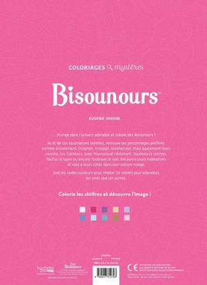 Grosbisou, Grosfarceur, Grosgnon, Groscopain... Les Bisounours sont la personnafication des sentiments et, ensemble, ils rétablissent la joie dans le monde ! Que ce soit sur leur nuage-voiture, leurs arc-en-ciel ou dans leur maison, découvre (ou redécouvre) les Bisounours et leurs cousins, les Calinours, à travers leurs aventures. Redonne-leur toutes les couleurs de l'arc-en-ciel pour leur donner vie !