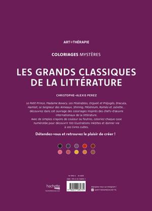 Le Petit Prince, Madame Bovary, Les Misérables, Orgueil et Préjugés, Dracula, Hamlet, Le Seigneur des Anneaux, Shining, Millénium, Roméo et Juliette... découvrez dans cet ouvrage des coloriages inspirés des chefs-d'œuvre internationaux de la littérature.