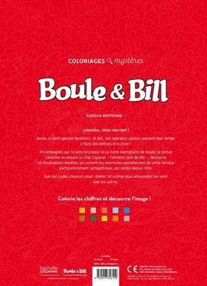 Attention, chien marrant ! Boule, le petit garçon facétieux, et Bill, son adorable cocker, passent leur temps à faire des bêtises et à jouer ! Accompagnés par le père bricoleur et la mère exemplaire de Boule, la tortue Caroline ou encore le chat Caporal – l’ennemi juré de Bill –, découvre 50 illustrations inédites qui suivent les aventures quotidiennes de cette famille particulièrement sympathique, qui existe depuis 1959. Suis les codes couleurs pour révéler 50 scènes plus amusantes les unes que les autres.