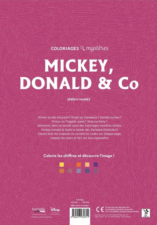 Découvre, dans ce nouvel opus des Coloriages mystères Disney, Mickey, Donald et toute la bande des Standard characters ! Grâce aux codes couleurs, applique chaque nuance dans la zone correspondante pour révéler la scène représentée.
