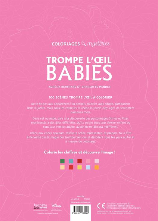 Dans cet ouvrage, pars à la découverte des personnages Disney et Pixar représentés sous des âges différents. Qu’ils soient sous leur version enfant ou sous leur version adulte, aucun ne te laissera indifférent. Grâce aux codes couleurs, révèle la scène représentée, et laisse-toi émerveiller par la magie des trompe l’œil qui se dévoilent sous tes yeux.