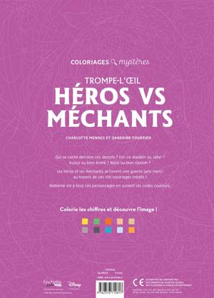 1 - CHOISIS TES OUTILS - crayons de couleur, feutres à eau ou feutres acryliques 2 - COLORIE LES NUMÉROS selon le code couleur pour révéler une magnifique illustration Disney ! 3 - PROFITE d'un moment de détente avec les livres de coloriage Hachette Heroes ! 100 PAGES DE COLORIAGES MYSTÈRES - pour des heures de divertissement GRAND FORMAT - le format 300 mm x 215 mm pour donner vie aux personnages PAPIER PREMIUM - pour éviter tout débordement UN CADEAU PARFAIT - pour les fans de Disney de tous âges