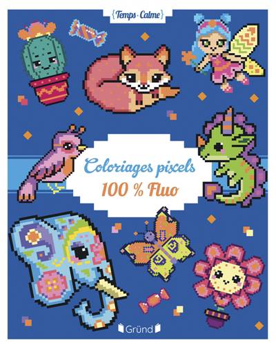 Laisse libre cours à ton imagination et mets en couleurs 60 coloriages pixels fluos !