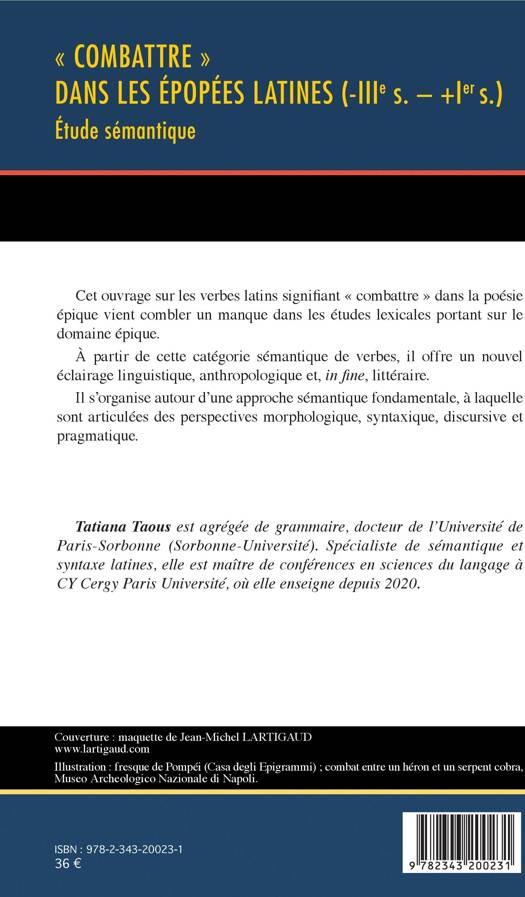 Cet ouvrage sur les verbes latins signifiant « combattre » dans la poésie épique vient combler un manque dans les études lexicales portant sur le domaine épique. À partir de cette catégorie sémantique de verbes, ce livre offre un nouvel éclairage linguistique, anthropologique et, in fine, littéraire. Il s'organise autour d'une approche sémantique fondamentale, à laquelle sont articulées des perspectives morphologique, syntaxique, discursive et pragmatique.