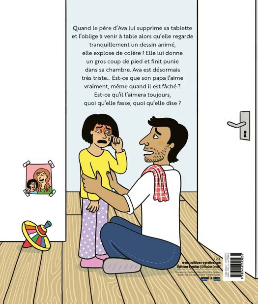 Quand le père d’Ava lui supprime sa tablette et l’oblige à venir à table alors qu’elle regarde tranquillement un dessin animé, elle explose de colère ! Elle lui donne un gros coup de pied et finit punie dans sa chambre. Ava est désormais très triste… Est-ce que son papa l’aime vraiment, même quand il est fâché ? Est-ce qu’il l’aimera toujours, quoi qu’elle fasse, quoi qu’elle dise ?