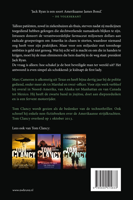 Talloze patiënten, zowel in ziekenhuizen als thuis, sterven nadat zij medicijnen toegediend hebben gekregen die slechtwerkende namaaksels blijken te zijn. Intussen doneert de verantwoordelijke farmaceut miljoenen dollars aan radicale groeperingen om Amerika in chaos te storten, waardoor niemand oog heeft voor zijn praktijken. Maar voor een miljardair met torenhoge ambities is geld niet genoeg. Wat hij echt wil is macht en om die in handen te krijgen, moet hij de man elimineren die hem daarbij in de weg staat: president Jack Ryan.