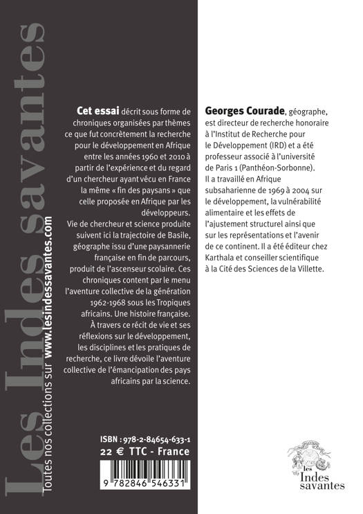 Cet essai décrit sous forme de chroniques organisées par thèmes ce que fut concrètement la recherche pour le développement en Afrique entre les années 1960 et 2010 à partir de l’expérience et du regard d’un chercheur ayant vécu en France la même « fin des paysans » que celle proposée en Afrique par les développeurs.