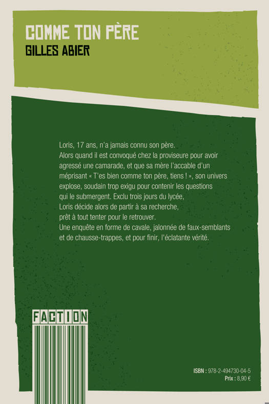 Loris, 15 ans, n'a jamais connu son père. Alors quand il est convoqué chez le proviseur pour avoir agressé une camarade, et que sa mère l'accable d'un méprisant «ÂÂ Tu es comme ton pèreÂÂ », son univers explose, soudain trop exigu pour contenir les questions qui le submergent. Exclu trois jours du lycée, Loris décide alors de partir à sa recherche, prêt à tout tenter pour le retrouver. Une enquête en forme de cavale, jalonnée de faux-semblants et de chausse-trappes, et pour finir, l'éclatante vérité. Mais est-ce son père que Loris trouvera au bout du cheminÂÂ ?