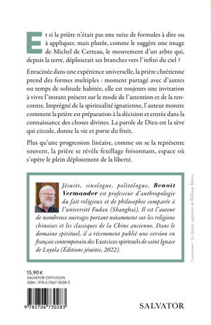 Et si la prière n'était pas une suite de formules à dire ou à appliquer, mais plutôt, comme le suggère une image de Michel de Certeau, le mouvement d'un arbre qui, depuis la terre, déploierait ses branches vers l'infini du ciel ? Enracinée dans une expérience universelle, la prière chrétienne prend des formes multiples : moment partagé avec d'autres ou temps de solitude habitée, elle est toujours une invitation à vivre l'instant présent sur le mode de l'attention et de la rencontre. Imprégné de la spiritualité ignatienne, l'auteur montre comment la prière est préparation à la décision et entrée dans la connaissance des choses divines. La parole de Dieu est la sève qui circule, donne la vie et porte du fruit. Plus qu'une progression linéaire, comme on se la représente souvent, la prière se révèle feuillage foisonnant, espace où s'opère le plein déploiement de la liberté.
