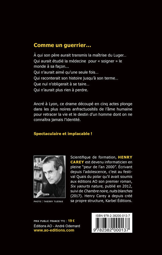 Ancré à Lyon, ce roman en forme de témoignage plonge dans les plus noires anfractuosités de l’âme humaine pour retracer la vie et le destin d’un homme dont on ne connaîtra jamais l'identité. « Spectaculaire et implacable ! » Un drame découpé en 5 actes : Luger / Mezzogiorno / Apprentissage / Scalpel / Bushido
