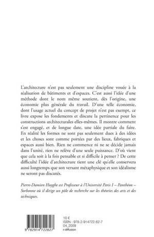 L'architecture n'est pas seulement une discipline vouée à la réalisation de bâtiments et d'espaces. C'est aussi l'idée d'une méthode dont le nom même soutient, dès l'origine, une économie plus générale du travail. D'une telle économie, dont l'usage actuel du concept de projet n'est pas exempt, ce livre expose les fondements et discute la pertinence pour les constructions architecturales elles-mêmes. Il montre comment s'est engagé, et de longue date, une idée partiale du faire. En réalité les formes ne sont pas seulement dues à des idées et les choses sont comme portées par des lieux, fabriques et espaces aussi bien. Rien ne commence ni ne se décide jamais dans l'unité, rien ne relève d'une seule puissance. D'où vient que cela soit à la fois pensable et si difficile à penser ? De cette difficulté l'idée d'architecture tient une clé qu'elle conservera aussi longtemps que son versant métaphysique et son idéalisme ne seront pas discutés.
