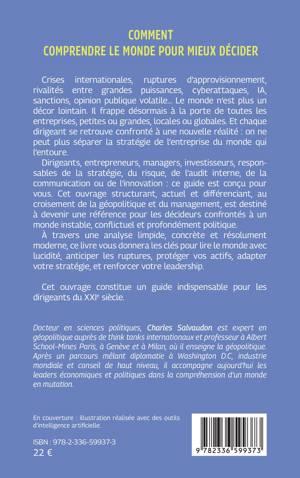 Dirigeants, entrepreneurs, managers, investisseurs, responsables de la stratégie, du risque, de l’audit interne, de la communication ou de l’innovation : ce guide est conçu pour vous. Cet ouvrage structurant, actuel et différenciant, au croisement de la géopolitique et du management, est destiné à devenir une référence pour les décideurs confrontés à un monde instable, conflictuel et profondément politique.