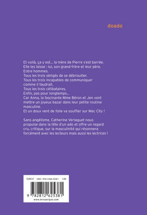 Quand Pierre, 15 ans, Guillaume, 19 ans, et leur père se retrouvent « entre hommes » c'est la révolution ! Pour le (pas) meilleur et (surtout) le pire. Après le départ de leur mère, partie travailler sur un bateau de croisière, les trois garçons doivent apprendre à vivre, ou plutôt s urvivre, sans elle. Et quand les nouvelles rencontres, le désir et l'amour viennent se glisser là- dedans, le cocktail devient explosif ! Sans angélisme, Catherine Verlaguet nous propulse dans la tête d'un ado et offre un regard cru, critique, sur la masculinité qui résonnera forcément avec les lecteurs mais aussi les lectrices !