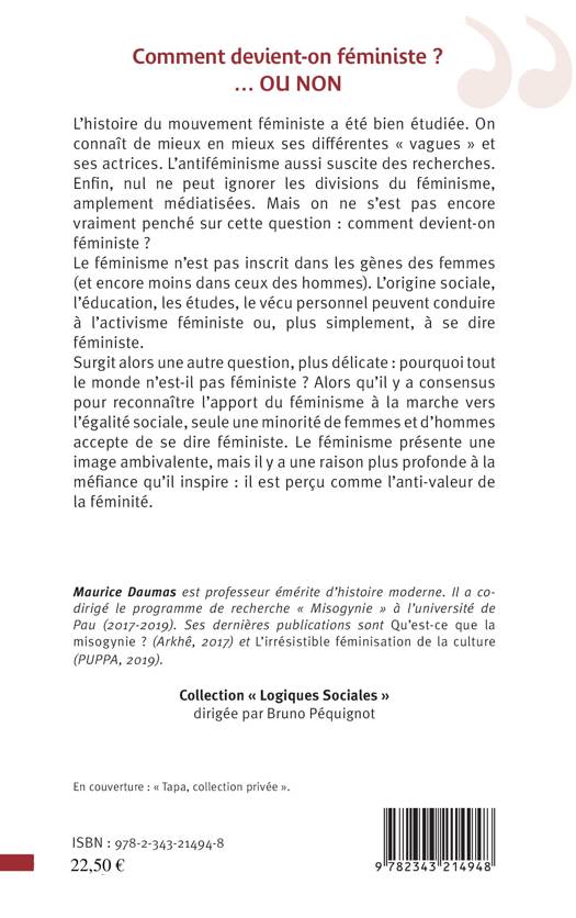L'histoire du mouvement féministe a été bien étudiée. On connaît de mieux en mieux ses différentes « vagues » et ses actrices. L'antiféminisme aussi suscite des recherches. Enfin, nul ne peut ignorer les divisions du féminisme, amplement médiatisées. Mais on ne s'est pas encore vraiment penché sur cette question : comment devient-on féministe ? Le féminisme n'est pas inscrit dans les gènes des femmes. L'origine sociale, l'éducation, les études, le vécu personnel peuvent conduire à l'activisme féministe ou, plus simplement, à se dire féministe.