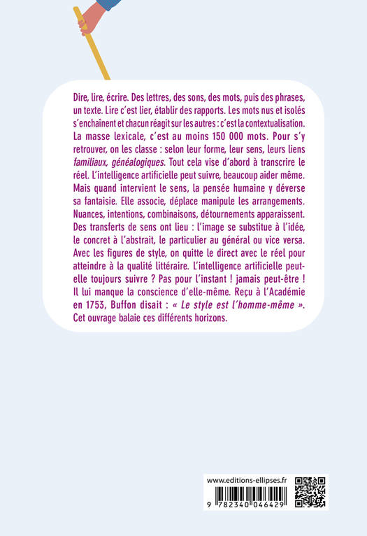 Mais quand intervient le sens, la pensée humaine y déverse sa fantaisie. Elle associe, déplace manipule les arrangements. Nuances, intentions, combinaisons, détournements apparaissent. Des transferts de sens ont lieu : l’image se substitue à l’idée, le concret à l’abstrait, le particulier au général ou vice versa. Avec les figures de style, on quitte le direct avec le réel pour atteindre à la qualité littéraire. L’intelligence artificielle peut-elle toujours suivre ? Pas pour l’instant ! jamais peut-être ! Il lui manque la conscience d’elle-même. Reçu à l’Académie en 1753, Buffon disait : « Le style est l’homme-même ».
