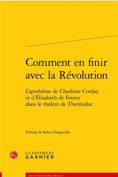 Les deux tragédies royalistes ici présentées, jamais jouées, ont été écrites la même année, en 1797. Elles ont en commun bien plus que cette date. Leurs auteurs entendent rendre hommage à deux martyres de la Révolution : Charlotte Corday, « l'ange de l'assassinat », et la soeur de Louix XVI, Élisabeth de France. Ces pièces représentent un courant de pensée minoritaire dans le pays tout en s'inscrivant dans le mouvement unanime de condamnation de la Terreur. Ce faisant, elles proposent une réinterprétation du sens global de la Révolution. Leur étrange dialogue traduit les sentiments ambigus des Français face au plus grand événement de leur histoire.