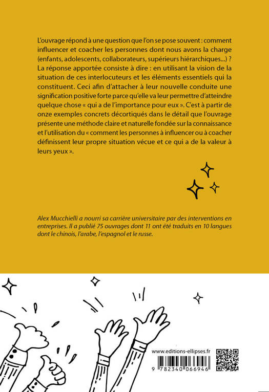 L'ouvrage répond à une question que l'on se pose souvent : comment influencer et coacher les personnes dont nous avons la charge (enfants, adolescents, collaborateurs, hiérarchiques...) ? La réponse apportée consiste à dire : en utilisant la vision de la situation de ces interlocuteurs et les éléments essentiels qui la constituent. Ceci afin d’attacher à leur nouvelle conduite une signification positive forte parce qu’elle va leur permettre d’atteindre quelque chose « qui a de l’importance pour eux ». C'est à partir de onze exemples concrets décortiqués dans le détail que l'ouvrage présente une méthode claire et naturelle fondée sur la connaissance et l'utilisation du « comment les personnes à influencer ou à coacher définissent leur propre situation vécue et ce qui a de la valeur à leurs yeux ».