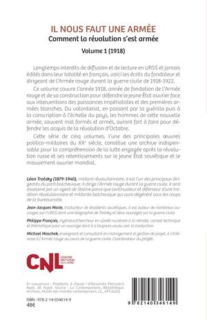 Longtemps interdits de diffusion et de lecture en URSS et jamais édités dans leur totalité en français, voici les écrits du fondateur et dirigeant de l'Armée rouge durant la guerre civile de 1918-1922. Ce volume couvre l'année 1918, année de fondation de l'Armée rouge et de sa construction pour défendre le jeune État ouvrier face aux interventions des puissances impérialistes et des premières armées blanches. Du volontariat, en passant par la guérilla puis à la conscription à l'échelle du pays, les hommes de cette nouvelle armée, souvent mal formés et armés, auront fort à faire pour défendre les acquis de la révolution d'Octobre. Cette série de cinq volumes, l'une des principales uvres politico-militaires du XXe siècle, constitue une archive indispensable pour la compréhension de la lutte engagée après la révolution russe et ses retentissements sur le jeune État soviétique et le mouvement ouvrier mondial.