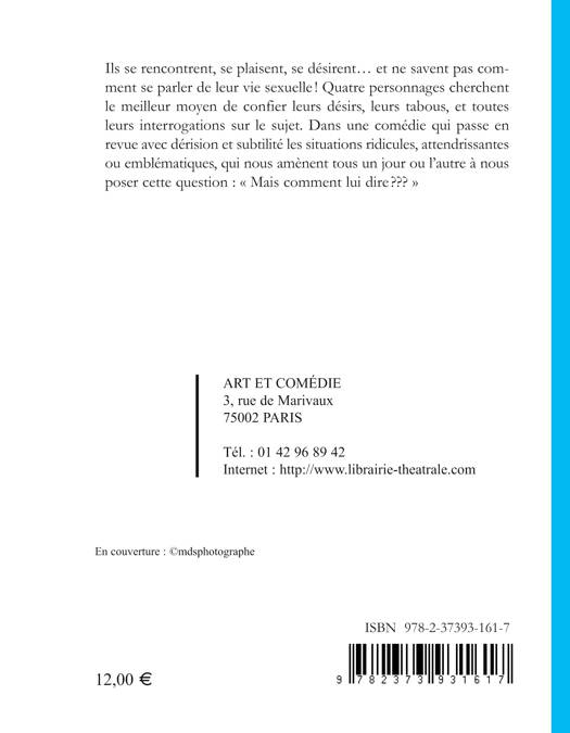 Ils se rencontrent, se plaisent, se désirent... et ne savent pas comment se parler de leur vie sexuelle ! Quatre personnages cherchent le meilleur moyen de confier leurs désirs, leurs tabous, et toutes leurs interrogations sur le sujet. Dans une comédie qui passe en revue avec dérision et subtilité les situations ridicules, attendrissantes ou emblématiques, qui nous amènent tous un jour ou l'autre à nous poser cette question: Mais comment lui dire