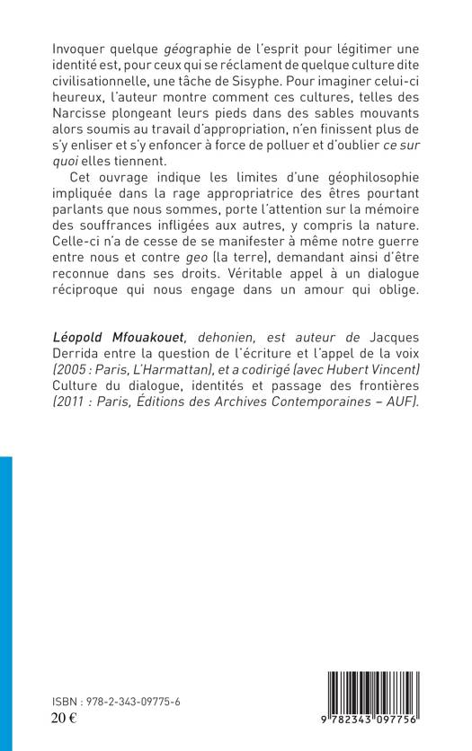 Cet ouvrage indique les limites d'une géophilosophie impliquée dans la rage appropriatrice des êtres pourtant parlants que nous sommes, porte l'attention sur la mémoire des souffrances infligées aux autres, y compris la nature. Celle-ci n'a de cesse de se manifester à même notre guerre entre nous et contre geo (la terre), demandant ainsi d'être reconnue dans ses droits. Véritable appel à un dialogue réciproque qui nous engage dans un amour qui oblige.