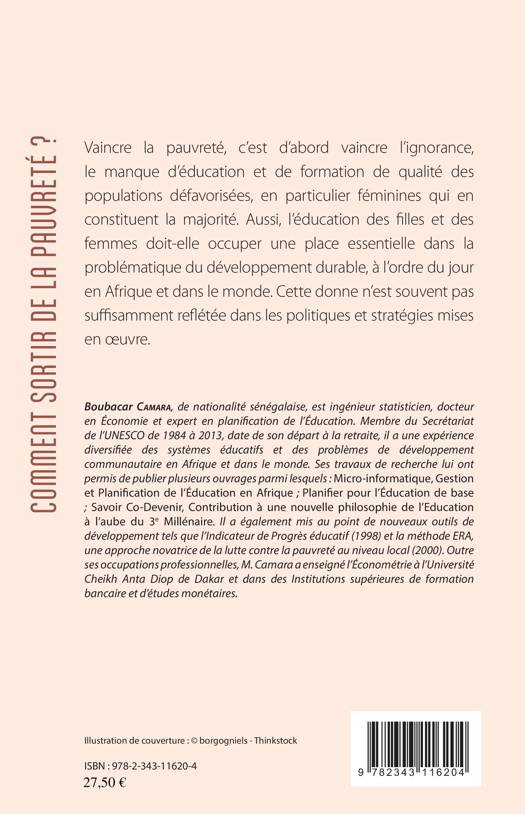 Vaincre la pauvreté, c'est d'abord vaincre l'ignorance, le manque d'éducation et de formation de qualité des populations défavorisées, en particulier féminines. Ce livre s'attache à la relation fondamentale entre éducation, culture et développement. L'éducation des filles et des femmes doit occuper une place essentielle dans la problématique du développement durable. L'auteur fait des propositions concrètes en matière de conception de plans, programmes et projets en liant l'éducation formelle et non formelle et le développement communautaire.