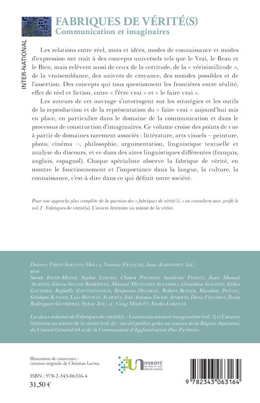 Les auteurs de cet ouvrage s'interrogent sur les stratégies et les outils de la reproduction et de la représentation du "faire vrai" aujourd'hui mis en place, en particulier dans la communication et dans le processus de constructions d'imaginaires. Ce volume croise des points de vue à partir de domaines rarement associés : littérature, arts visuels - peinture, photo, cinéma - philosophie, argumentation, linguistique textuelle et analyse du discours, et ce dans des aires linguistiques différentes (français, anglais, espagnol).