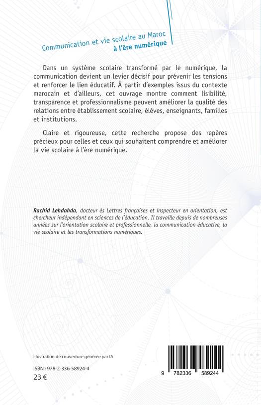 Dans un système éducatif transformé par le numérique, la communication devient un levier décisif pour prévenir les tensions et renforcer le lien éducatif. À partir d'exemples issus du contexte marocain et d'ailleurs, cet ouvrage montre comment lisibilité, transparence et professionnalisme peuvent améliorer la qualité des relations entre établissement scolaire, élèves, enseignants, familles et institutions. Claire et rigoureuse, cette recherche propose des repères précieux pour celles et ceux qui souhaitent comprendre et améliorer la vie scolaire à l'ère numérique.