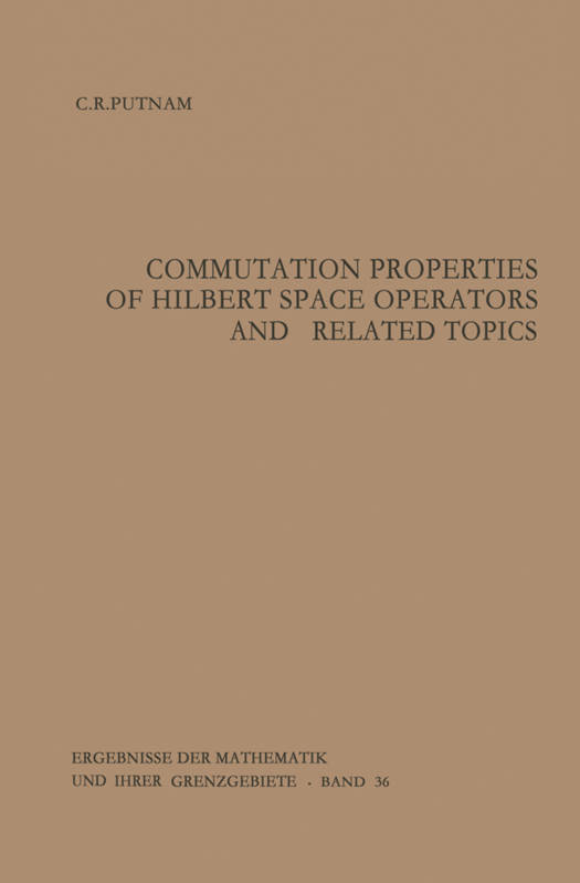 What could be regarded as the beginning of a theory of commutators AB - BA of operators A and B on a Hilbert space, considered as a dis- cipline in itself, goes back at least to the two papers of Weyl [3] {1928} and von Neumann [2] {1931} on quantum mechanics and the commuta- tion relations occurring there. Here A and B were unbounded self-adjoint operators satisfying the relation AB - BA = iI, in some appropriate sense, and the problem was that of establishing the essential uniqueness of the pair A and B. The study of commutators of bounded operators on a Hilbert space has a more recent origin, which can probably be pinpointed as the paper of Wintner [6] {1947}. An investigation of a few related topics in the subject is the main concern of this brief monograph. The ensuing work considers commuting or "almost" commuting quantities A and B, usually bounded or unbounded operators on a Hilbert space, but occasionally regarded as elements of some normed space. An attempt is made to stress the role of the commutator AB - BA, and to investigate its properties, as well as those of its components A and B when the latter are subject to various restrictions. Some applica- tions of the results obtained are made to quantum mechanics, perturba- tion theory, Laurent and Toeplitz operators, singular integral trans- formations, and Jacobi matrices.