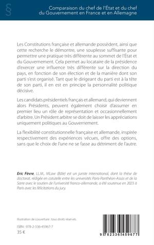 Les Constitutions française et allemande possèdent, ainsi que cette recherche le démontre, une souplesse suffisante pour permettre une pratique très différente au sommet de l'État et du Gouvernement. Cela permet au locataire de la présidence d'exercer une influence très différente sur la direction du pays, en fonction de son élection et de la manière dont son parti s'est organisé. Tant que le dirigeant du parti est à la tête de son parti, il en est en principe la personnalité politique décisive. Les candidats présidentiels français et allemand, qui deviennent alors Présidents, peuvent également choisir d'assumer en premier lieu un rôle de représentation et occasionnellement d'arbitre. Un Président arbitre se doit de laisser les appréciations uniquement politiques au Gouvernement. La flexibilité constitutionnelle française et allemande, inspirée respectivement des expériences vécues, offre des options, sans que le choix de l'une ne se fasse au détriment de l'autre.