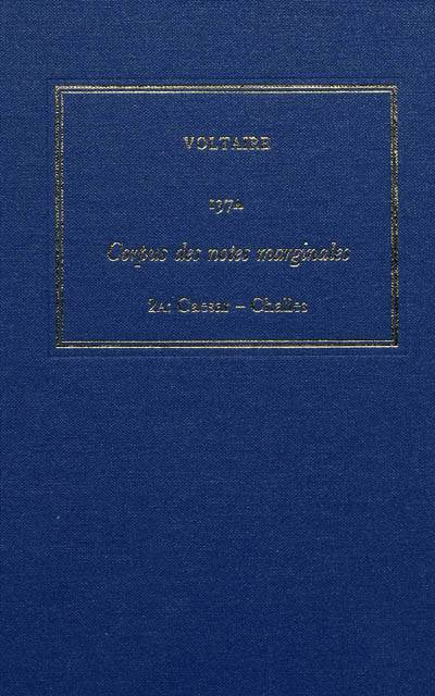 Part of the complete works of the French philosopher, historian and social reformer, Voltaire. Two in a 13-volume set which reprints Voltaire's marginal notes in the alphabetical sequence of the books in his library. An indispensable scholarly tool for students and scholars of the 18th-century Enlightenment with research interests in Voltaire.