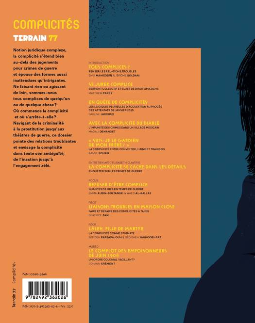 Cest la diversité des manières dêtre complice ou accusé de complicité que ce dossier propose dexplorer. À travers une série de cas ethnographiques, allant des mondes sociaux de la criminalité jusquaux théâtres de guerre, il interroge les ressorts de la complicité, mode de responsabilité complexe qui sétale de linaction jusquà lengagement zélé.