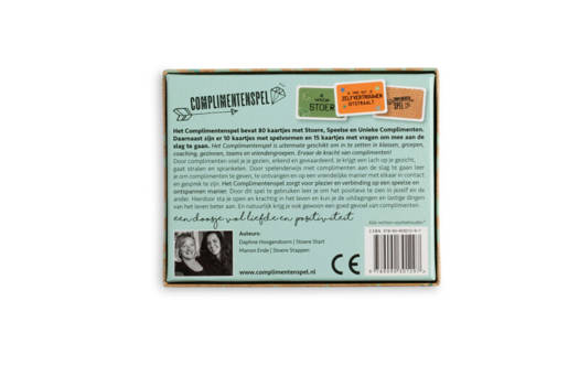 Het Complimentenspel is er voor iedereen die dol is op positiviteit en een (glim)lach! Het is gemakkelijk te gebruiken door groot en klein, kinderen én volwassenen beleven veel plezier met het Complimentenspel. Of dit nu thuis, op school, op het werk of met vrienden is; het Complimentenspel kun je overal mee naartoe nemen en zorgt bij iedereen voor een positief effect. Leven vanuit je passies, talenten en het gevoel van vertrouwen in jezelf en anderen is het mooiste wat er is. En natuurlijk krijg je ook gewoon een goed gevoel van complimenten.