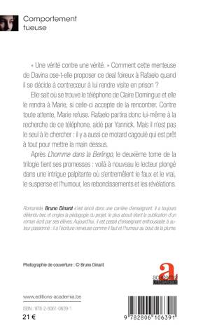 Les nombreux lecteurs qui attendent la suite de L'homme dans la Berlingo ne seront pas déçus. Ils retrouveront avec plaisir Rafaelo, toujours égal à lui-même, qui se débat cette fois contre un trio de femmes dangereuses : Davina qui revient à la charge depuis sa prison en lui proposant un deal foireux, sa redoutable avocate Diane de la Roche qui ne laissera rien passer... Et même Marie, qui prend ses distances et montre enfin son vrai visage.