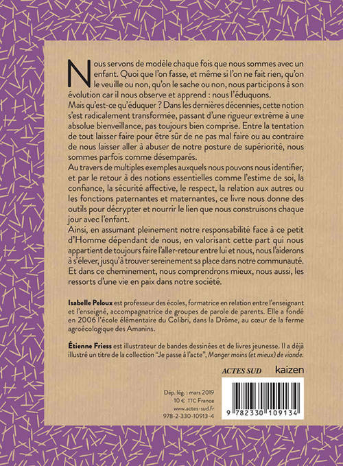 Nous servons de modèle chaque fois que nous sommes avec un enfant. Quoi que l'on fasse, et même si l'on ne fait rien, qu'on le veuille ou non, qu'on le sache ou non, nous participons à son évolution car il nous observe et apprend, par imitation. Il regarde comment devenir un humain en prenant des repères chez les personnes qui l'entourent, et plus particulièrement celles qui s'occupent de lui régulièrement. Entre la tentation de tout laisser faire pour être sûr de ne pas mal faire ou au contraire de nous laisser aller à abuser de notre posture de supériorité, nous sommes parfois comme désemparés. Au travers de multiples exemples auxquels nous pouvons nous identifier, et par le retour à des notions essentielles comme l'estime de soi, la confiance, la sécurité affective, le respect, la relat
