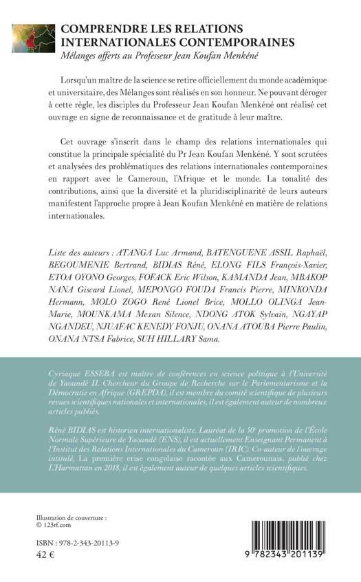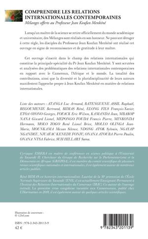 Cet ouvrage s'inscrit dans le champ des relations internationales qui constitue la principale spécialité du Pr Jean Koufan Menkéné. Y sont scrutées et analysées des problématiques des relations internationales contemporaines en rapport avec le Cameroun, l'Afrique et le monde. La tonalité des contributions, ainsi que la diversité et la pluridisciplinarité de leurs auteurs manifestent l'approche propre à Jean Koufan Menkéné en matière de relations internationales.