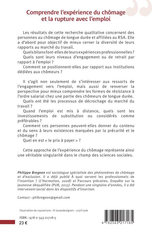 Les résultats de cette recherche qualitative concernent des personnes au chômage de longue durée et affiliées au RSA. Elle a d'abord pour objectif de mieux cerner la diversité de leurs rapports au marché du travail. Quels bilans font-elles de leurs expériences professionnelles ? Quels sont leurs niveaux d'engagement ou de retrait par rapport à l'emploi ? Comment se positionnent-elles par rapport aux institutions dédiées aux chômeurs ? Il s'agit non seulement de s'intéresser aux ressorts de l'engagement vers l'emploi, mais aussi de renverser la perspective pour mieux comprendre les formes de résistance à l'ordre salarial chez une partie des chômeurs de longue durée.