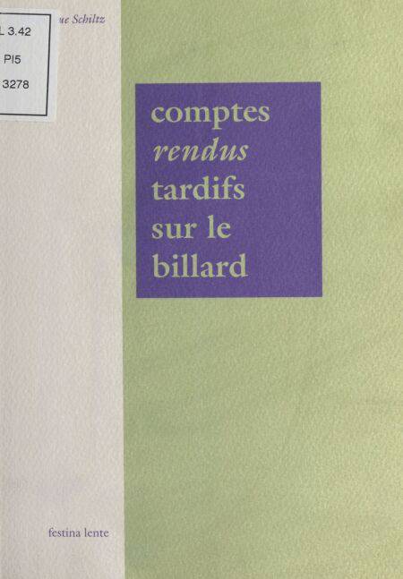 C’est l’histoire d’un dormeur, de sa dernière nuit, d’un postillon cérébral et d’un œil qui en sortent, comme extirpés du corps, en dehors du monde et en dehors du temps. Il est pourtant question du corps, du monde et du temps dans Comptes rendus tardifs sur le billard, ce récit presque froid, tel un rapport administratif, parfois clinique comme le lieu où se déroule l’action, mais toujours virevoltant dans l’air, dans le passé, dans les rêves. Tardifs, enfin : cela fait combien d’années que l’auteur songe à ces dialogues écorchés entre un dormeur, sa dernière nuit, un postillon et un œil ? Combien d’ébauches, combien de dessins ? Autant que de débauches et de dessins, achevés ou inaboutis, une vie en somme, qui donne vie au récit. Pour solde de tout compte.