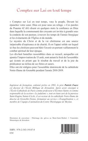 « Comptez sur Lui en tout temps, vous le peuple, Devant lui épanchez votre coeur. Dieu est pour nous un refuge. » Ces paroles du Psaume 62 (61) disent en quelques mots la confiance en Dieu dans laquelle la communauté des croyants est invitée à grandir sous la conduite de son pasteur, à travers les temps de l'année liturgique et les événements de l'Église et du monde. Le mystère du Christ et de la vie chrétienne est une source inépuisable d'espérance et de charité. Il est l'appui solide sur lequel les chrétiens peuvent bâtir l'avenir en portant vaillamment le combat spirituel de leur époque.