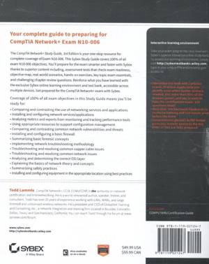 All-star N10-006 prep, fully updated for the new exam The CompTIA Network+ Study Guide is your one-stopcomprehensive resource in preparing for exam N10-006 Bestsellingauthor and networking Guru Todd Lammle guides you through 100% ofall exam objectives detailing the fundamental concepts you willneed to know to prepare for the exam.