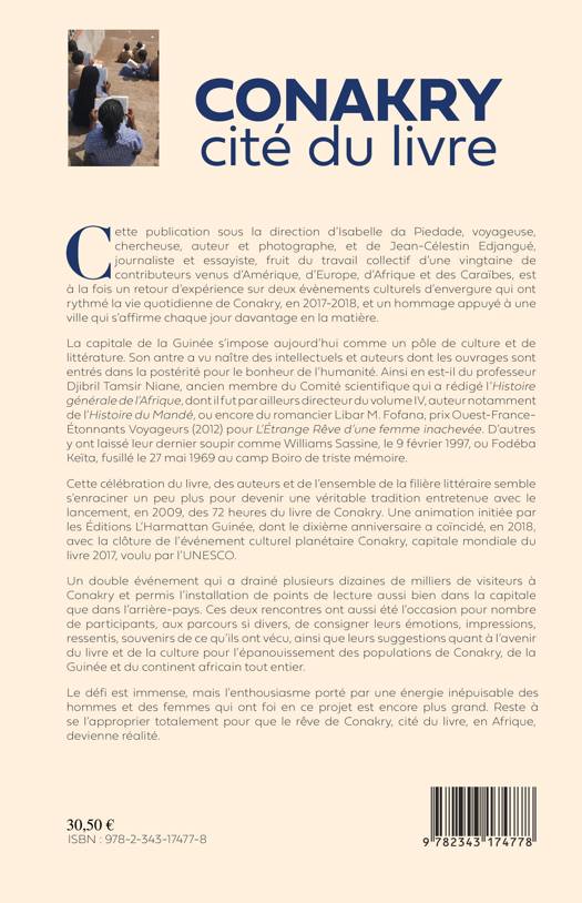 La capitale de la Guinée s'impose aujourd'hui comme un pôle de culture et de littérature La célébration du livre, des auteurs et de l'ensemble de la filière livre s'enracine toujours un peu plus pour devenir une véritable tradition entretenue par les 72 heures du livre ; cette animation initiée par l'équipe de l'Harmattan Guinée a soufflé sa dixième bougie en 2018 avec la clôture de l'événement culturel planétaire "Conakry capitale mondiale du livre 2017" voulu par l'Unesco. Ce double événement a été l'occasion de consigner émotions, impressions, ressentis ainsi que suggestions quant à l'avenir du livre et de la culture pour l'épanouissement des populations de Conakry, de la Guinée et du continent africain tout entier. C'est un défi immense mais accompagné par un enthousiasme porté par une énergie inépuisable pour que le rêve "Conakry cité du livre "devienne une réalité.