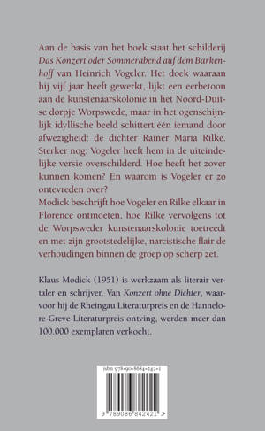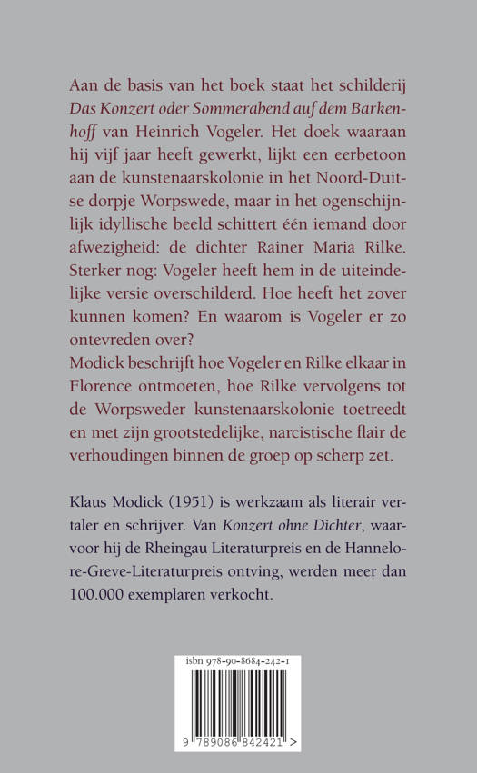 Aan de basis van het boek staat het schilderij Das Konzert oder Sommerabend auf dem Barkenhoff van Heinrich Vogeler. Het doek waaraan hij vijf jaar heeft gewerkt, lijkt een eerbetoon aan de kunstenaarskolonie in het Noord-Duitse dorpje Worpswede, maar in het ogenschijnlijk idyllische beeld schittert één iemand door afwezigheid: de dichter Rainer Maria Rilke. Sterker nog: Vogeler heeft hem in de uiteindelijke versie overschilderd. Hoe heeft het zover kunnen komen? En waarom is Vogeler er zo ontevreden over?